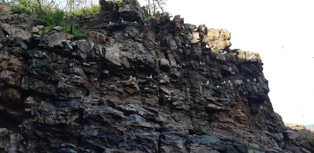 Cliff-nesting black-legged kittiwakes. Photo: Raphaël Lavoie.