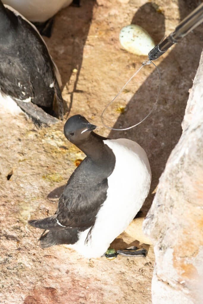 Hakluyt Island (77° 26’ N, 72° 42’ W) with the Greenlandic name Appaarsuit is a small (4.8 x 2.2 km) uninhabited island between Greenland and Canada peaking at 421m, and it is the northernmost colony of Brünnich’s guillemots in the western Atlantic. There are steep cliff faces with Brünnich’s guillemots and kittiwake ledges mainly along the northern side. The island contains about 15 700 pairs of kittiwakes, and 59 500 pairs of Brünnich’s guillemots nesting from about 25 to 400 m above sea level. Seabird research started on Hakluyt island in 1996-1998, followed up with regular monitoring from 2007 – and Seatrack from 2021.