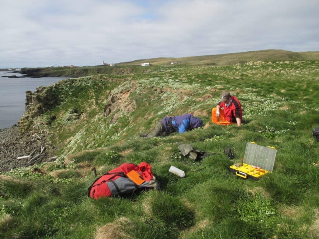 Puffin burrows inspected in Grímsey Photo: Ingvar A. Sigurðsson.