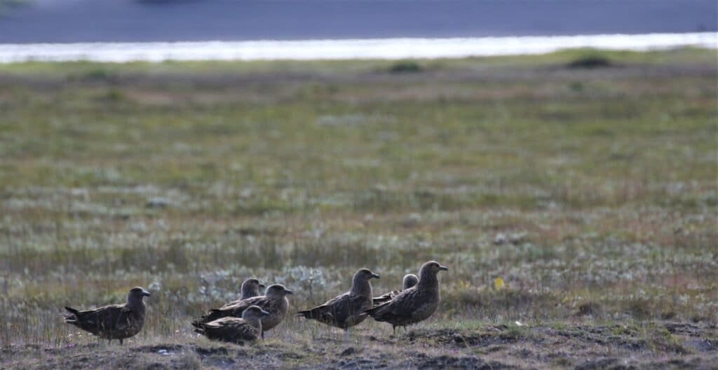 Úthérað is classified as an important bird area by Birdlife International due to large breeding populations of species such as Arctic skuas (1,300 pairs), Red- throated Diver (220 pairs) andGraylag goose (7,517 pairs). Great skuas (Stercorarius skua) also breed in the area with the most recent population estimate since 2000 counting 265 breeding pairs (Guðmundsson et al. 2001), but counts in recent years have shown a decline in the population. GLS and GPS logger deployments started in 2023 on Great skuas in a colony north of the farm of Húsey, where there is an estimate of 40 to 55 breeding pairs.