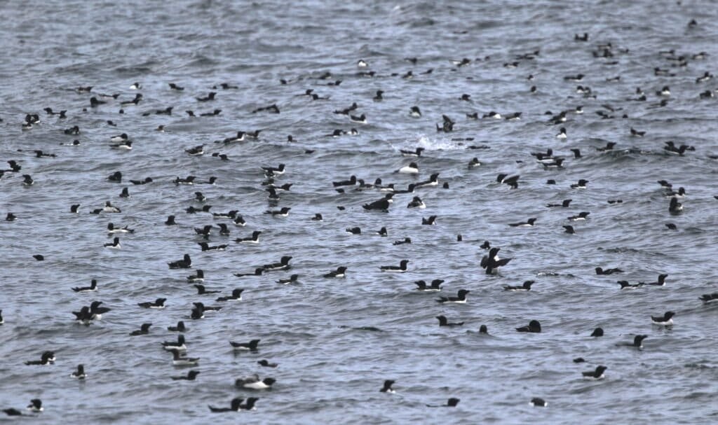 Auks on the sea. Photo: Ulrik Lötberg.